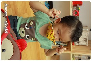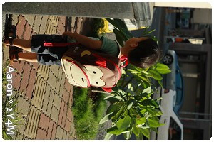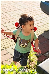 而且背包上肩之後,一整個就是大到一個不行,只露出一個頭與兩條腿,所以只好先打消幫Aaron添個超可愛背包的念頭。
