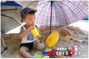 玩水玩沙經過時間成長之後的Edward,開始會懂的使用玩具在沙堆中玩沙