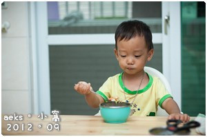 不是學自己吃飯哦!是他要自己吃飯!