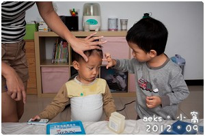 上完藥,Aaron主動要求要幫弟弟貼上OK蹦。
