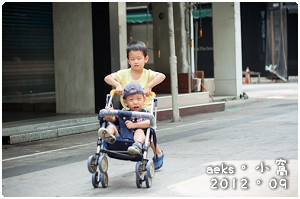 推著推車帶這兩兄弟出門,哥哥有時候喜歡爭著推弟弟,
