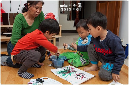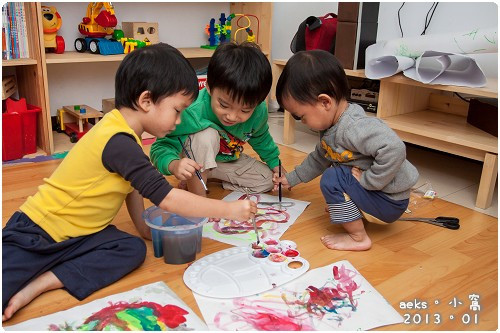 以Edward 的年紀來說,接觸水彩似乎太早了,但是讓他也一起玩耍也是不錯的學習