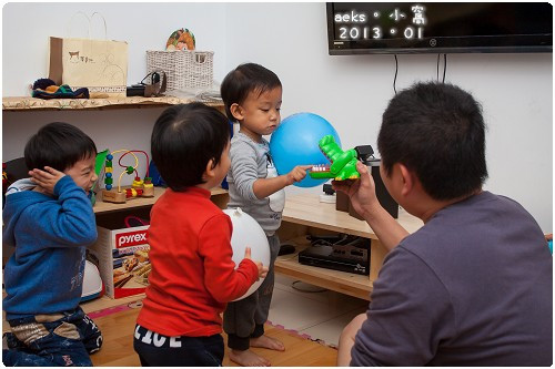 還好,廚房旁設計了一個小小遊戲空間,有很多的玩具,可應付這些小小孩們呢