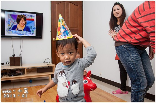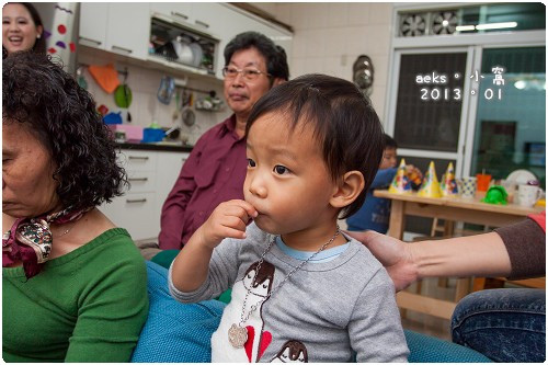 Edward 還拿著他的玩具的切菜刀,似乎是準備等一下切蛋糕用 ^^
