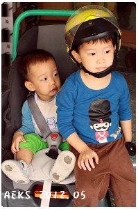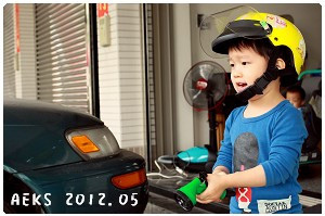 搞不懂為什麼小人兒堅持要戴上安全帽)