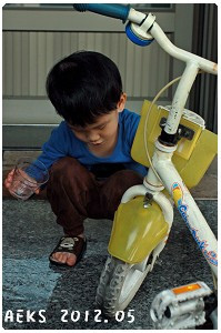在馬麻的叫罵聲下,Aaron只好趕緊把小腳踏車洗一洗,上樓換乾淨的衣服,免得"又"感冒了。