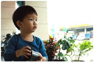 *口連的Edward 這天上午只能乖乖坐在汽坐上,看著葛格玩水,