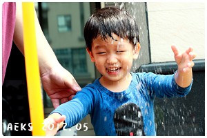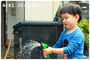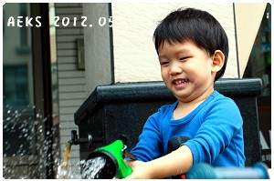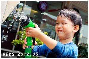 後來跟舅舅玩起水仗來了。 (小人兒笑起來就是那麼的天真可愛