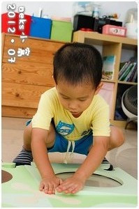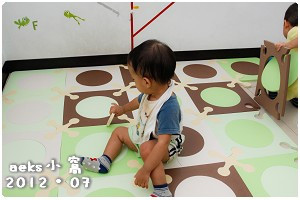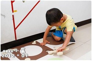 20片的無毒遊戲墊,Aaron把它拿來當拼圖玩,搶著要幫忙拼遊戲墊