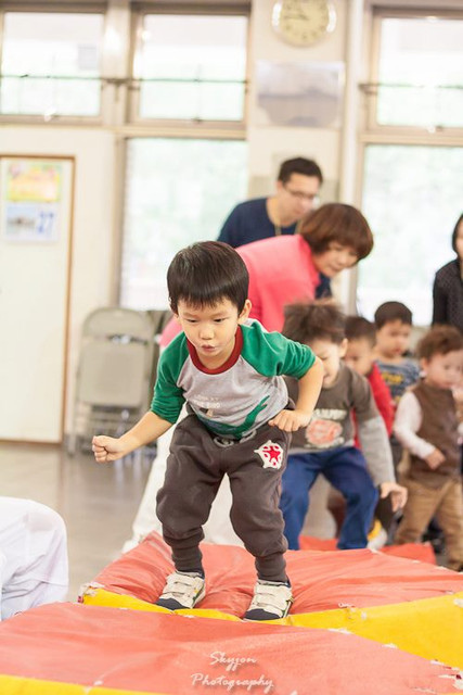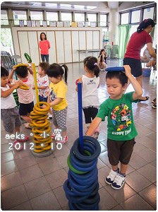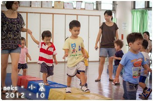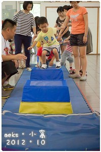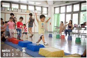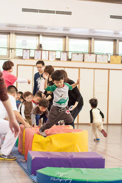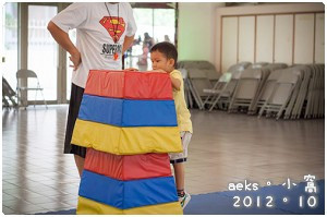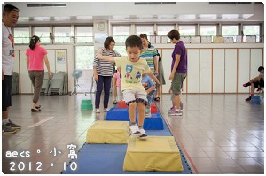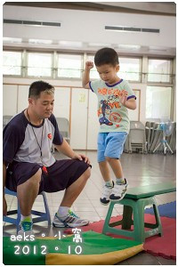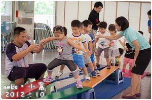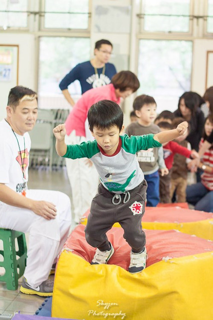 由於是親子體能班,每次上課,Skyjon 或是Kellynn 陪著Aaron 上課