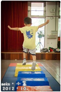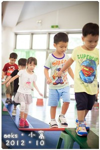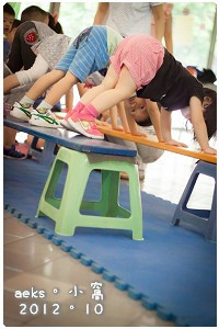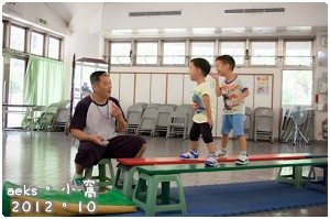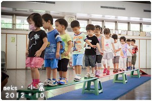 平衡木上,訓練小人們的平衡感,也訓練他們的勇氣