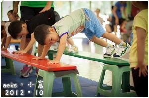 剛加入體能班的小人兒們,也在老師的指導下,從排隊、等待、等等基本指令開始學習...