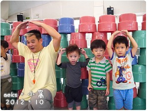 除了每次的"課程",Aaron 最HI地莫過於跟老師唱唱跳跳