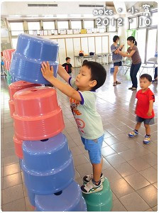 只見老師一聲令下,所有的小人兒們興奮地推推推,把眼前的椅凳子一股腦地推倒