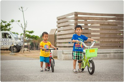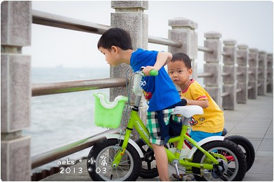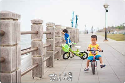 今天下午Aaron與Edward兩隻小人兒睡醒之後,帶他們去高雄旗津的風車公園騎車吹海風