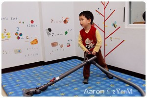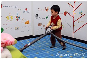越來越有小幫手架式的Aaron,每次Kellynn 在打掃時,總是要插上一腳"幫忙"