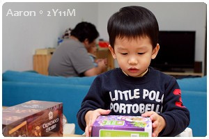 一下子來到多人的地方,Aaron 一到小樹的家就吵著要離開,只好先讓他挑選一樣感覺還不錯的玩具收買他。