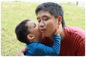 (Aaron 是算比較愛撒嬌的小人兒,有時還是會想黏在媽咪的身上