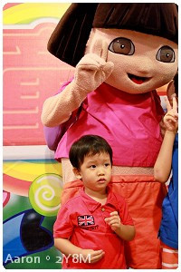 在看Dora 唱歌、跳舞到Aaron 跟Dora 拍完合照,這整個過程那個"大姐姐"都一直陪在我們身旁 (好像深怕我們跑掉似般地緊迫盯人)