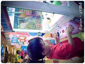 夾娃娃的遊戲,Aaron 就玩了6、7次 (還被他好運氣夾到兩隻,真是神奇了)