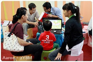 主動告知我們現場有個讓小朋友闖三關的遊戲哦!二話不說,馬上就領著我們跟Aaron 去玩。